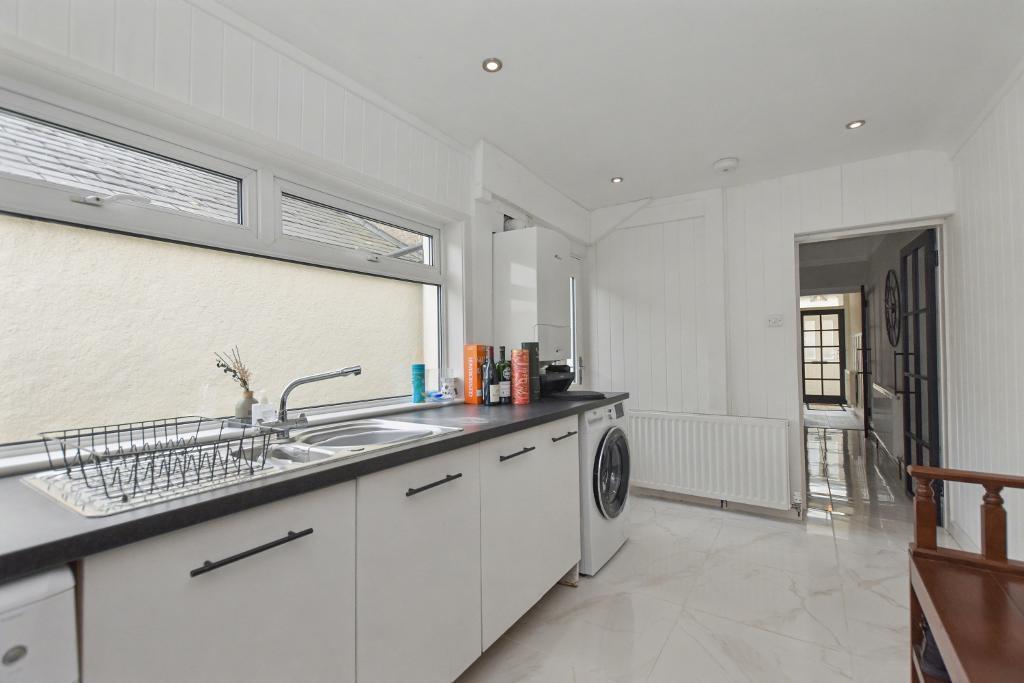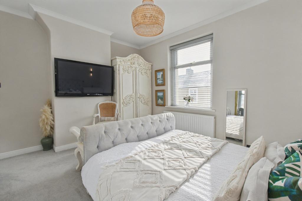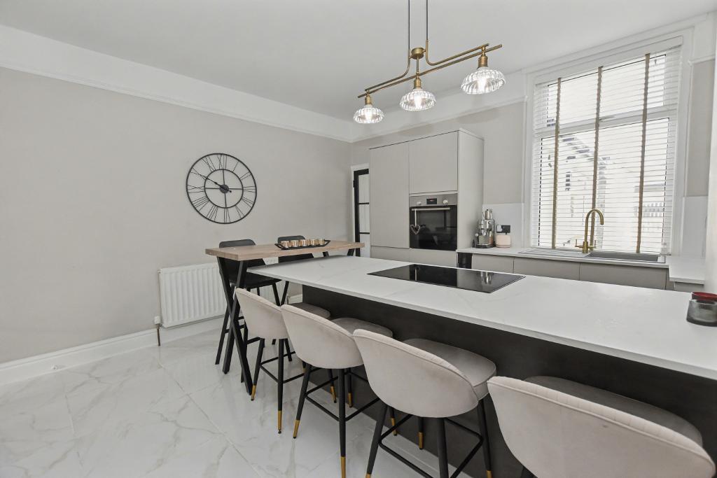 The house offers bright accommodation with a modern finish; the accommodation is arranged across 3 floors. There is a vestibule leading to the hallway with modern period style tiled flooring, there is a lounge to the front with bay window and feature Herringbone LVT flooring. The modern dining kitchen has a range of integrated appliances plus a good-sized central island unit with breakfast bar for 4 people. At the rear there is a really useful utility room with fitted units and space for extra storage. Upstairs there are two bedrooms and 3-piece bathroom with shower over the bath and a large airing cupboard. A staircase leads from the landing to a superb attic room with dormer to the rear. Externally there is a forecourt garden to the front, an enclosed rear yard. The property also owns part of the rear access road at the rear which has an artificial lawn and seating area. Viewing is recommended.